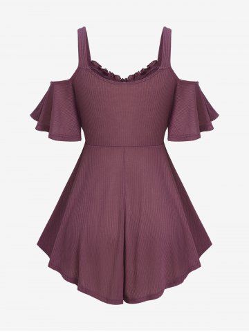 Camisetas de Talla Grande > Plus Size Ruched Butterfly Buckle Chain Cold Shoulder T-shirt