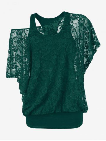 B*****b5Plus Size Skew Neck Sheer Lace Blouse and Racerback Tank TopColor: BLACK Size: 3XLove this two piece top. The lace is really pretty! The material is soft and comfortable, perfect fit, shipped fast and packaged nicely. High quality design and made very well!