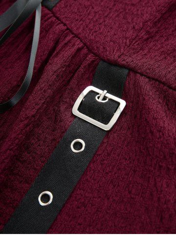 Plus Size Skulls Stars Mesh Flocking Sleeves Lace Up Grommet Buckle Straps Crinkle Top - Color Rojo Oscuro - 1x | Us 14-16
