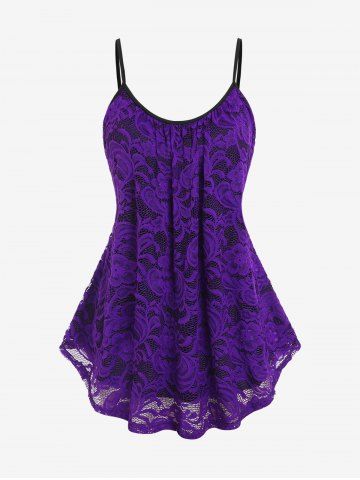 Camisetas de Talla Grande > Set Top Cami de Encaje y Contraste en Talla Extra