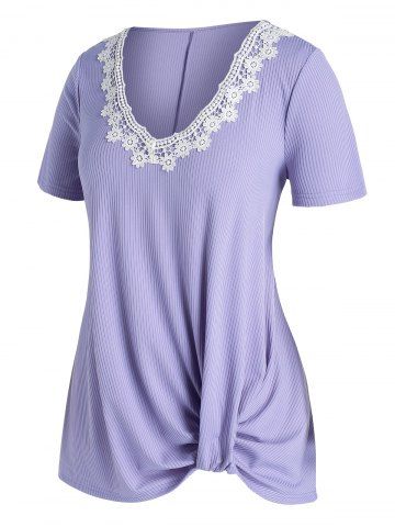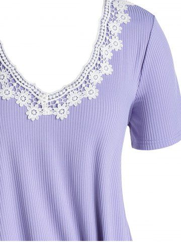 Tamaño de la túnica acanalada de apliques florales - Púrpura - Púrpura