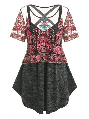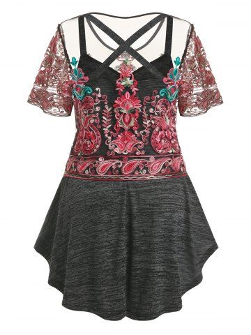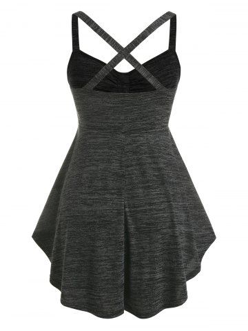 m*****y5Plus Size Space Dye Crisscross Tank Top and Embroidered Mesh Top SetColor: DARK GRAY Size: 4XHandle with caution I ripped a thread putting it on bc of my jewelry Nothing that's hard to fix myself. LOVE it! Perfect for hot flashes! The tank top is why I ordered a 2nd, very soft and light!