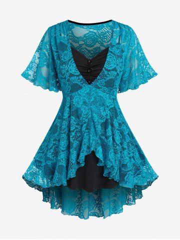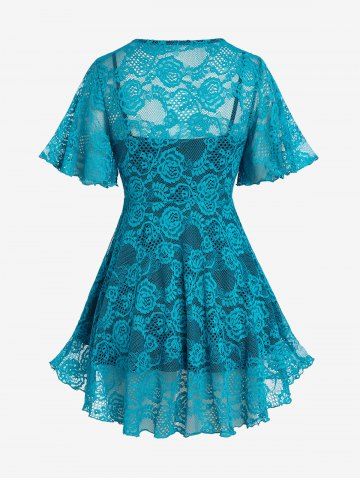 Plus Size Ruched Camisole and Lace Ruffle Butterfly Sleeve Top