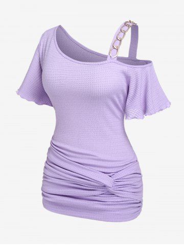 d*****55Plus Size Keyhole Ribbed Cutout Chains Cinched Raglan Sleeves TeeColor: LIGHT PURPLE Size: 3X | US 22-24The material is comfortable. You can wear it to any occasion.