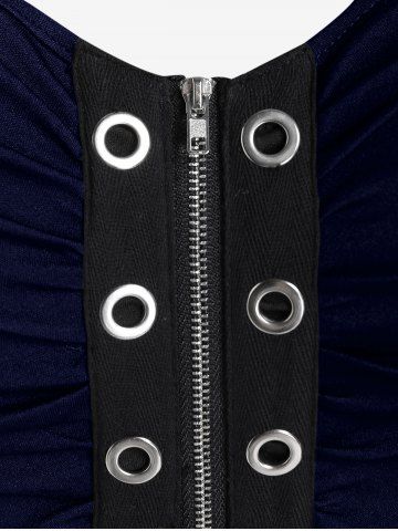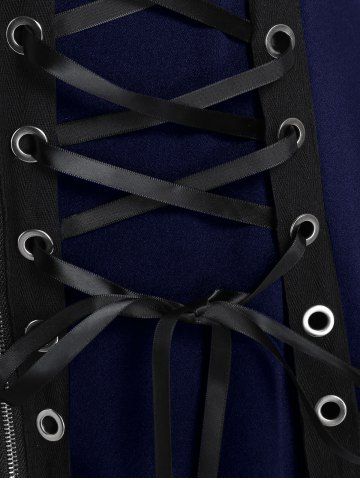 Lace Up Grommets Full Zipper Gothic Tank Top - Azul Profundo - 1x | Us 14-16