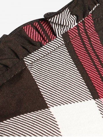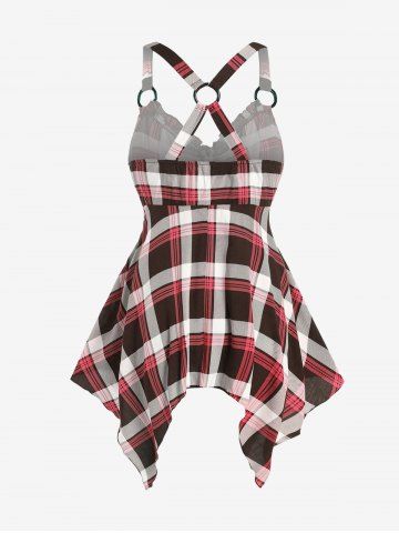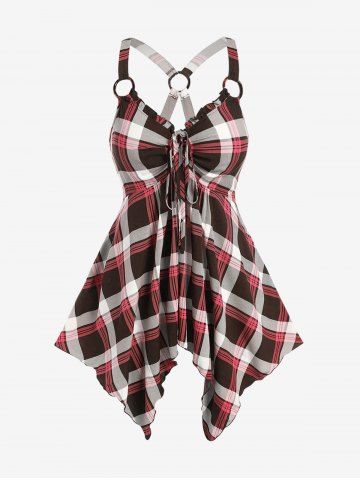 Plus Size Checked Rings Frilled Cinched Handkerchief Hem Tank Top - Color Rojo Oscuro - L | Us 12