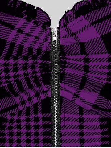 Lace Up Plaid Full Zipper Tank Top and Plaid Buckles High Waisted Mini Skirt Plus Size Outfit