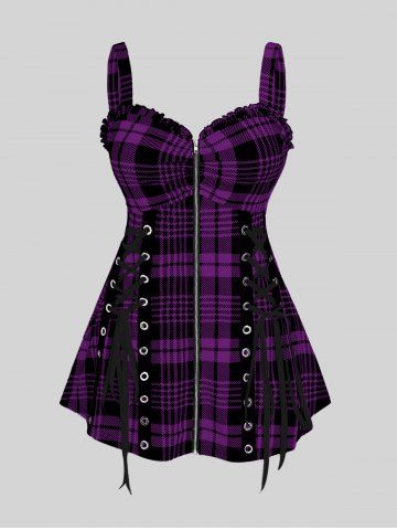 Plus Size & Curve Lace Up Full Zipper Plaid Tank Top - Concordia - L | Us 12