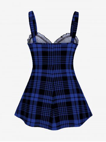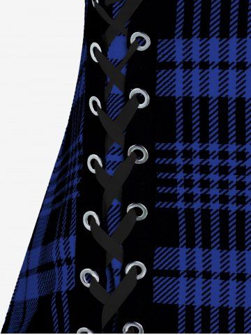 Plus Size & Curve Lace Up Full Zipper Plaid Tank Top - Azul Profundo - L | Us 12