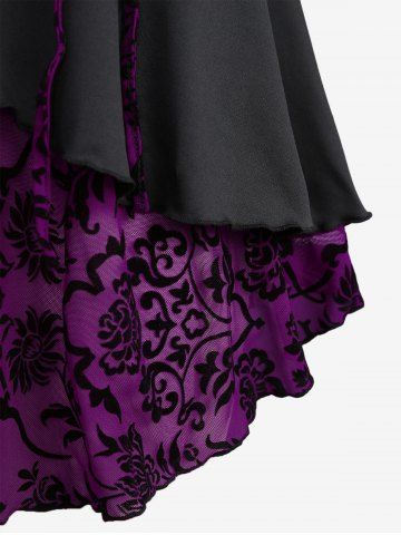 Plus Size Floral Flocking Tulip Hem Layered Ruffles Lace Up Ruched Heart Buckles Tank Top - Púrpura De Ciruela - 3x | Us 22-24