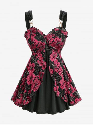 Plus Size Floral Lace Ruffles Backless Layered Tank Top
