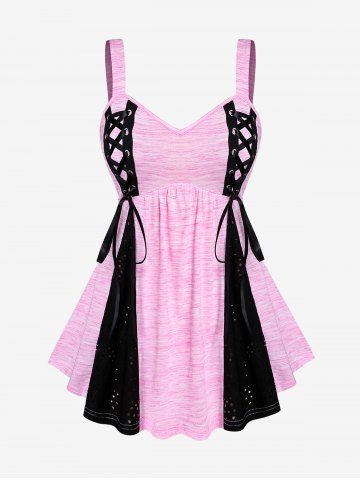 G*****y4Plus Size Lace Up Grommet Hollow Out Cami TopColor: LIGHT PINK Size: 1X | US 14-16Fits great and came fast in the mail. Like it shipped so fast. Really pleased! Love the shirt and it made me feel confident nStrings were a long and frustrating thoug