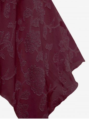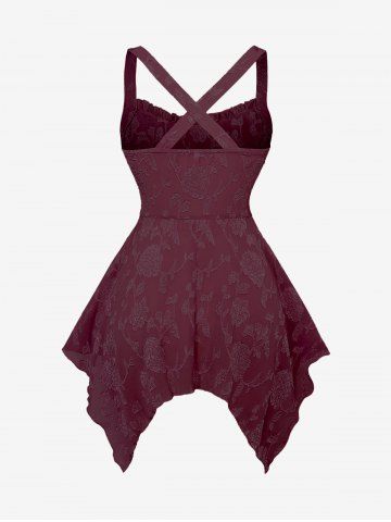 Plus Size Lace Up Grommets Ruffles Ruched Flowers Jacquard Crisscross Asymmetrical Tank Top - Color Rojo Oscuro - 5x | Us 30-32