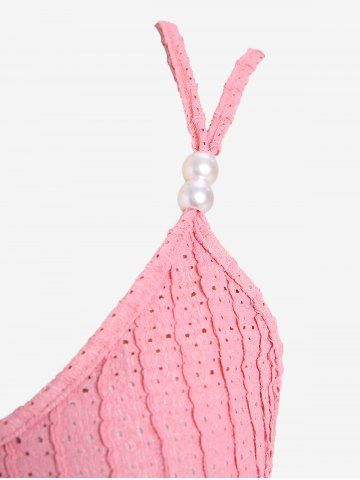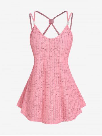 Plus Size Hollow Out Trim Backless Textured Tank Top