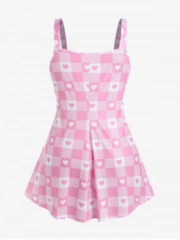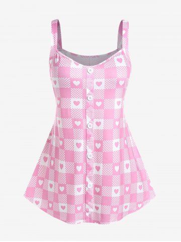 Plus Size Heart Print Colorblock Tunic Tank Top with Buttons