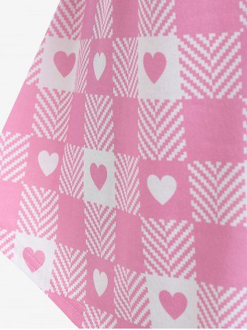 Tank Top de Túnica con Estampado de Corazón de Color Bloque con Botones - Rosa Claro - Rosa Luz
