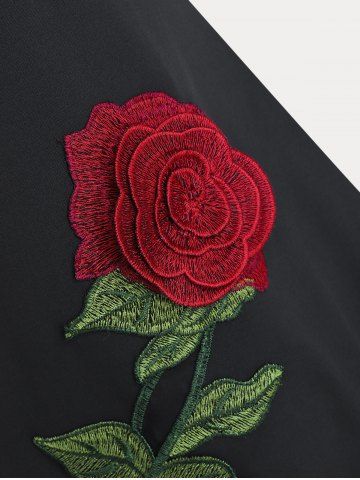 Top Cami de Manga Larga con Bordado de Rosa - Negro - Negro
