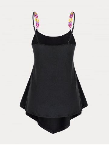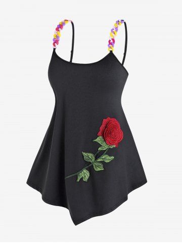 Plus Size Rose Embroidered Lace Up Sequin Tank Top