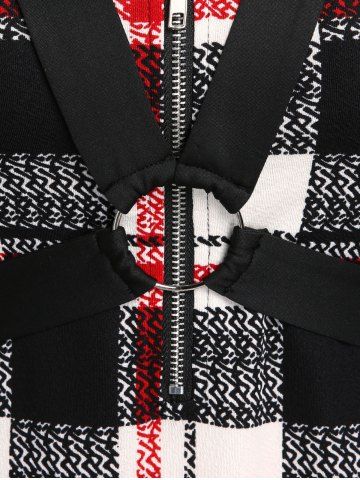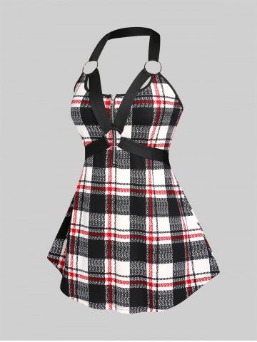 Plus Size & Curve Gothic O Ring Harness Plaid Backless Tank Top