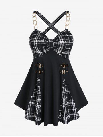 R*****r5Plus Size Crisscross Plaid Chains Empire Waist Tank TopColor: BLACK Size: 2X | US 18-20Looks great. Feels so soft. It fits just right. And my husband loves the way it looks on me. It is so nice to finally find perfect fix clothes!