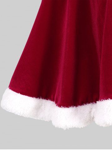 R*****a4Plus Size Velvet Two Tone Godet A Line DressColor: RED Size: 3X | US 22-24Love this dress for Mrs Claus except for one detail. Why on earth would anyone hem white material with red thread? It looks tacky. Also, as a designer, I would add some sort of white trim to the sleeve cuffs.