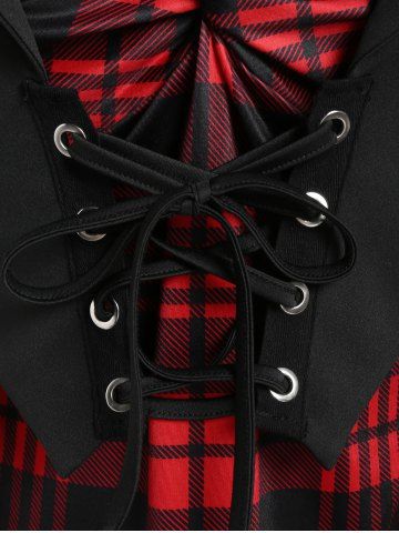 Long Sleeves > 2 en 1 Asimétrica de Cuadros con Cordones