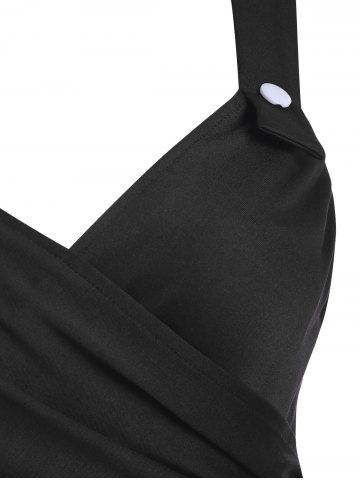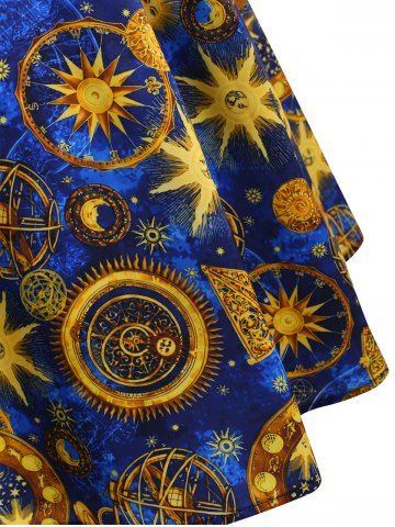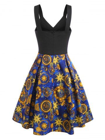 Botón Mock Criss Cross Sun Star Flor Vestido de impresión - Azul Profundo - S