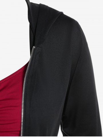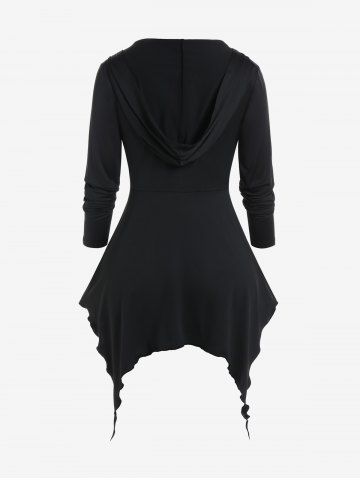 Alternative & Gothic Tops > Camiseta Asimétrica con Capucha y Cremallera