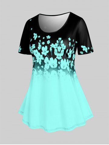 Camiseta con Estampado de Flores de Ciruelo de Talla Extra con Escote Pronunciado en Espalda - Verde Claro - Verde Claro