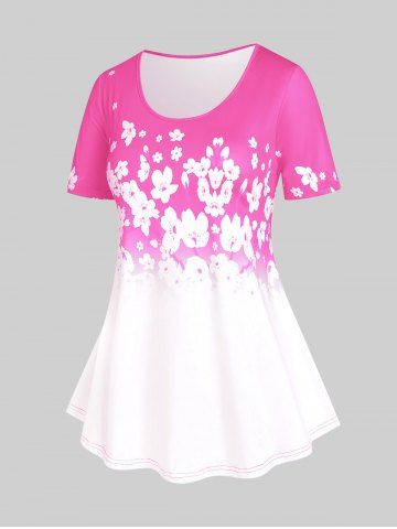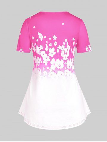 Graphic Tees > Camiseta con Estampado de Flores de Ciruelo de Talla Extra con Escote Pronunciado en Espalda