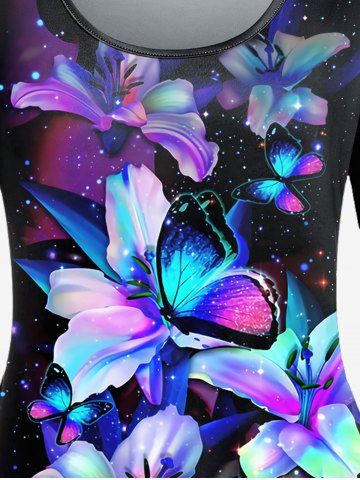 Butterfly Floral Print Tee and Colorful Flower Print Skinny Leggings Plus Size Outfit