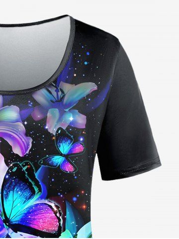 Graphic Tees > Camiseta con Estampado de Flores de Mariposa en Talla Extra