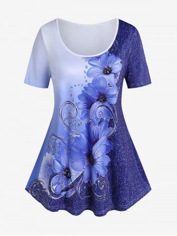 S*****y5Floral Print Ombre Color Tee and Floral 3D Denim Print Cropped Jeggings Plus Size Matching SetColor: BLUEBeautiful colors nice fit. I gave this to my Mom she looks so cute in it. Mom is 73 and doesn't dress up much but sure looked nice in this.