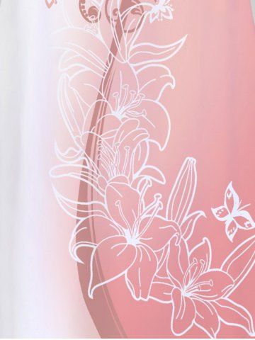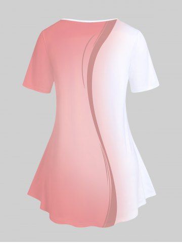 Camiseta con Estampado de Flores en Forma de Corazón de Color Bloque - Rosa Claro - Rosa Luz
