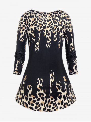 Camiseta con Estampado de Leopardo de Talla Extra con Mangas de Raglán - Negro - Negro