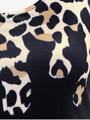 Graphic Tees > Camiseta con Estampado de Leopardo de Talla Extra con Mangas de Raglán