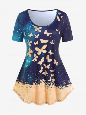 D*****e5Plus Size Short Sleeve Butterfly Print T-shirtColor: DEEP YELLOW Size: M | US 10I just want to start off, by saying that I love rose gal, and all their clothing. I only buy my clothes from RoseGal. I’ve ordered from Rosegal quite a few times so I know what to expect when I order a garment or outfit from them. nnThis is a beautiful garment and looks just like the picture. It fits me perfectly. This garment has beautiful colors throughout that blend well together. nnThe fabric is so soft and comfortable. You could sleep in it if you had to. If I had a complaint, it would be that on a few shirts, the straps are a little big, but I can just pull them back and talk them together, no biggie. if I had a complaint, it would be that on a few shirts, the straps are a little big, but I can just pull them back and tack them together, no biggie. Great the value would definitely recommend it. It is great value would definitely recommend it.