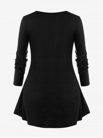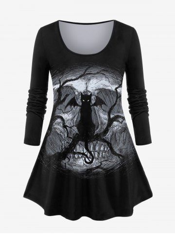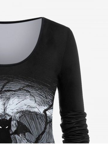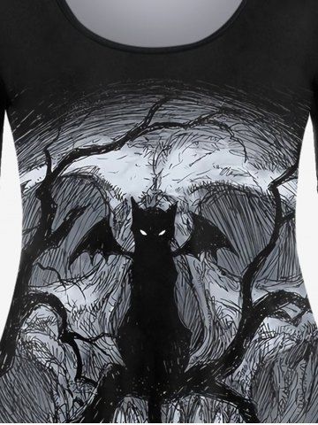 L*****i5Gothic Cat Bat Branch Print Long Sleeve T-shirt and 3D Denim Print Lace Panel Bell Bottom Pants OutfitColor: BLACKI love it