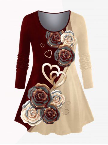 Rose Heart 3D Print Colorblock T-shirt and Leggings Plus Size Outfit