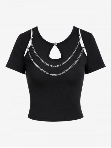 Camiseta Corta con Adornado de Cadenas de Ojo de Cerradura - Negro - Negro
