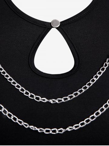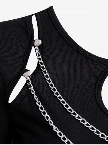 Plus Size Solid Cold Shoulder Harness Chains Gothic T Shirt