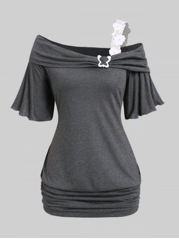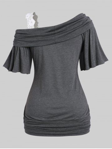 s*****25Skew Neck Lace Panel Ruched Half Sleeves Tee and High Waisted Wide Leg Pants with Pockets Plus Size Summer OutfitColor: GRAYOnce again I got 2 different sizes in I outfit! 2x shirt and size 10 pants. Nobody from Rosegal has contacted me about the size mistakes and it's almost impossible to contact them.