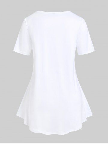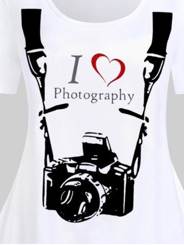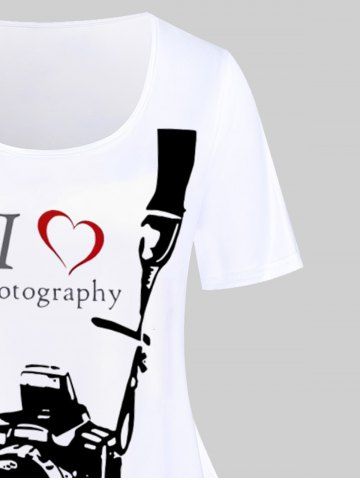 Camiseta Cuello Redondo Estampado Cámara Tamaño Plus - Blanco - Blanco