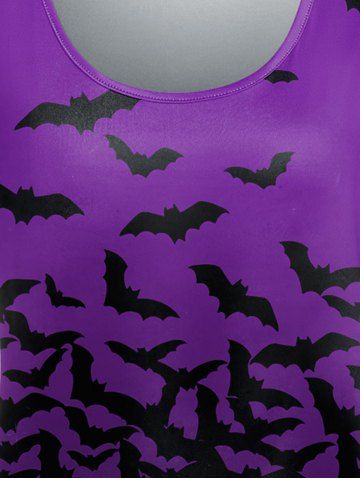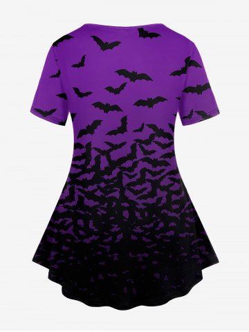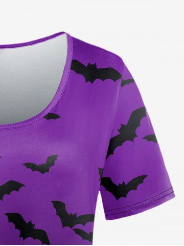 Camiseta de Cuello Redondo con Mangas Cortas con Estampado de Murciélago Gótico - Púrpura - Púrpura