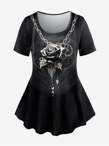 c*****n5Gothic Chain Rose Print T-shirtColor: BLACK Size: 2X | US 18-20Je ne suis pas très gothique mais ce chandail est très beau léger et confortable. Fit parfaitement