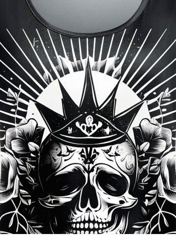 Camiseta de Cuello Redondo con Pintura de Rosa de Cráneo Gótico - Negro - Negro