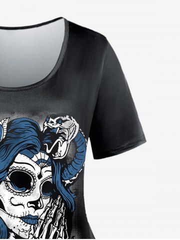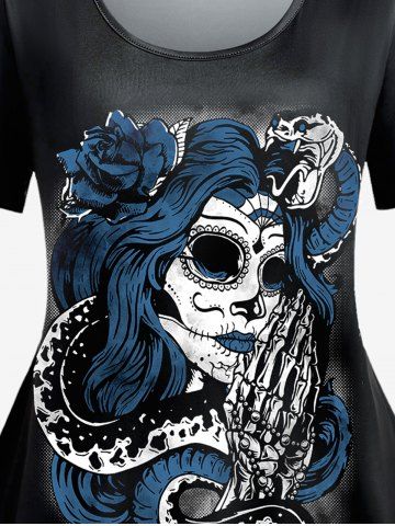 F*****a5Gothic Witch Rose Print T-shirt And Plus Size Plaid Zipper Mini A Line Skirt Gothic OutfitColor: BLUEI love this outfit
