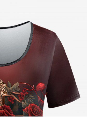 L*****e5Gothic Rose Cross Print Ombre T-shirtColor: BLACK Size: L | US 12soft, very pretty coloring and graphic design. fits well, and goes with my jeans.