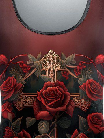 c*****44Gothic Rose Skull Print Skinny Leggings and Rose Skull Print Skinny Leggings OutfitColor: DEEP REDI love the shirt in this pair. The leggings are a little thin but great for warmer weather. I am a petite cut, so I will have to alter the waistband, but I love the print and will wear them often