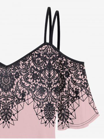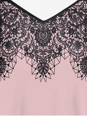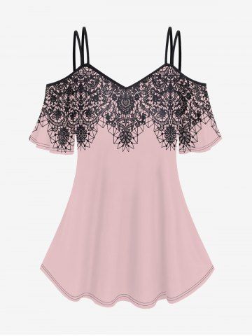 Camiseta de Hombros Al Aire con 3D Estampado de Encaje en Talla Extra - Rosa Claro - Rosa Luz